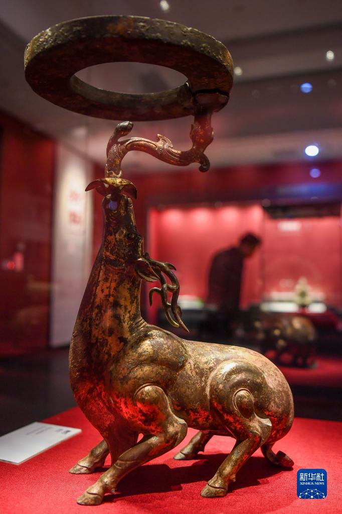 這是1月12日在大云山漢王陵博物館內拍攝的西漢“鹿燈”。