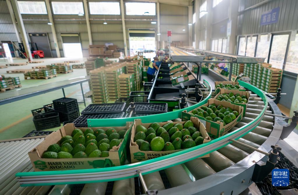 牛油果在云南省孟連縣牛油果分揀車(chē)間內完成分揀包裝(2022年11月17日攝)。