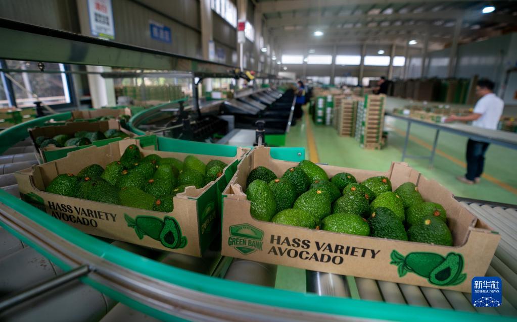 牛油果在云南省孟連縣牛油果分揀車(chē)間內完成分揀包裝(2022年11月17日攝)。