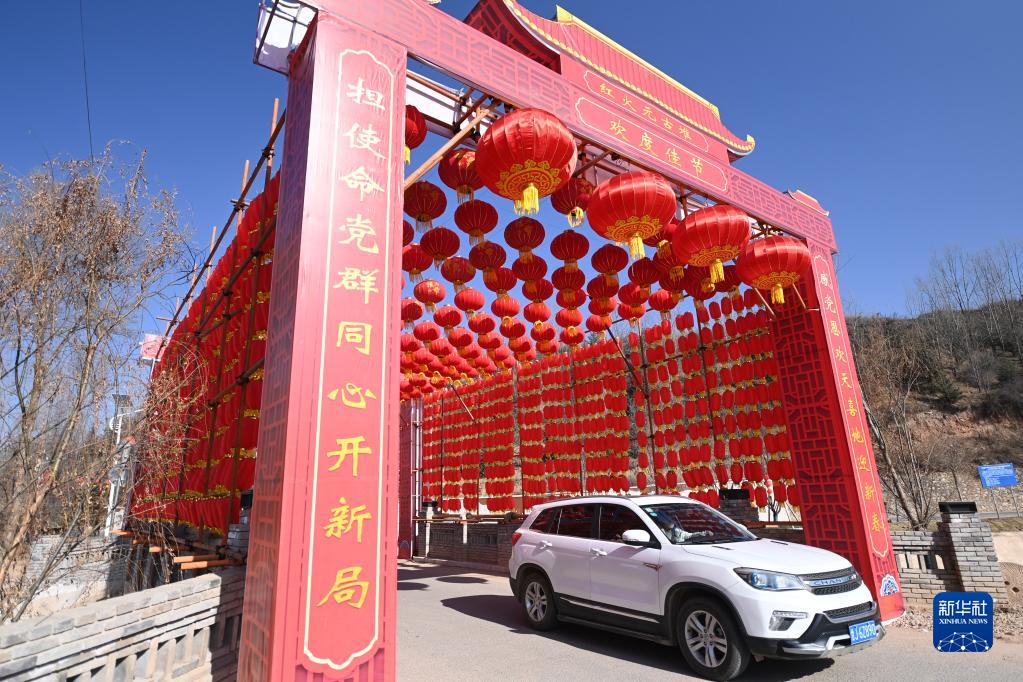 元古堆村搭起燈籠彩門(mén)迎接春節(1月10日攝)。