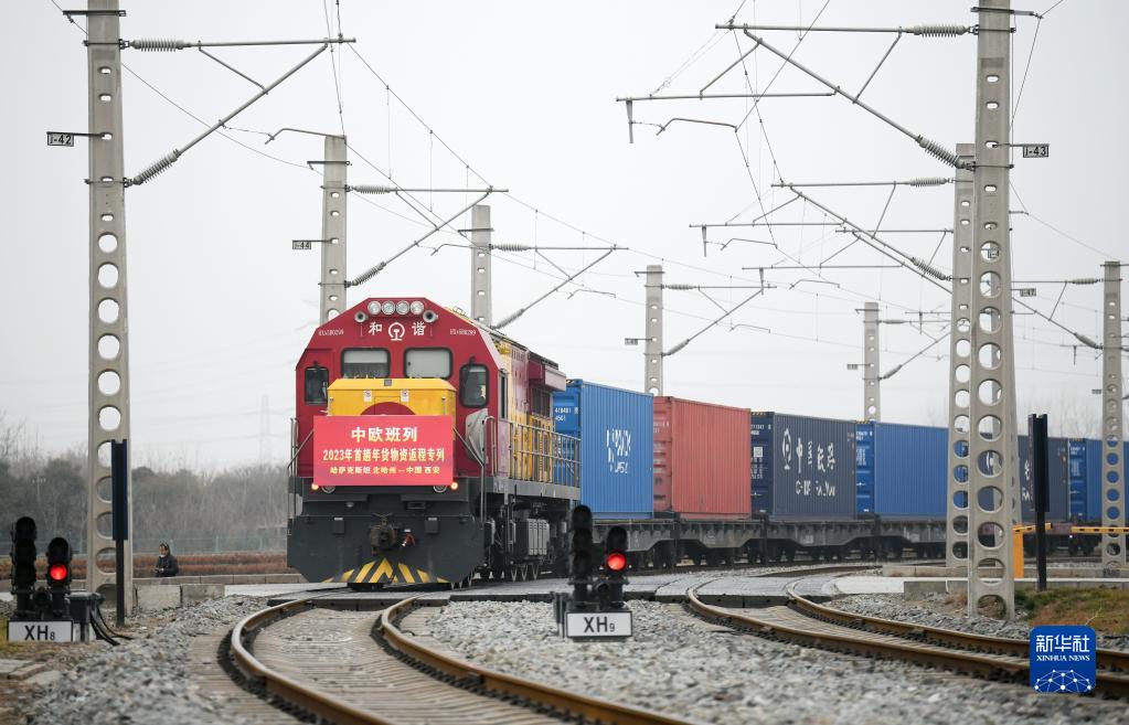 1月13日上午,滿(mǎn)載來(lái)自哈薩克斯坦1300噸面粉的中歐班列駛入西安國際港站貨場(chǎng),標志著(zhù)2023年首趟中歐班列年貨物資返程專(zhuān)列順利抵達西安,為即將到來(lái)的春節拉來(lái)了“洋年貨”。