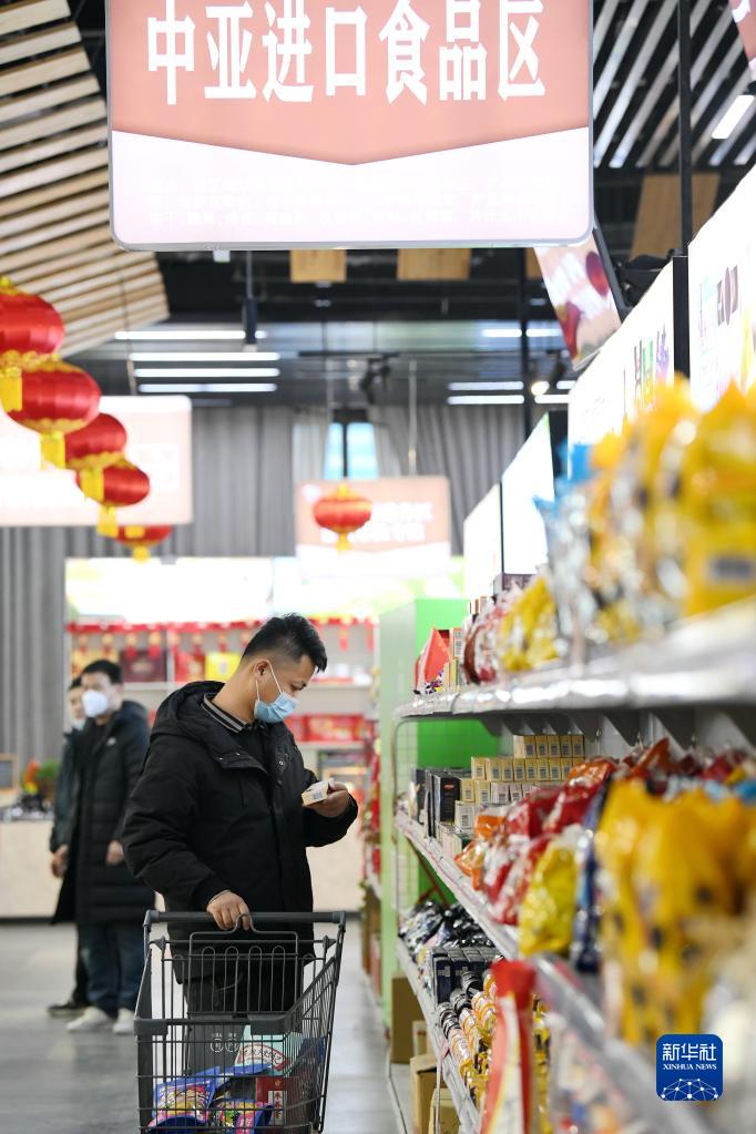 1月13日,在位于西安國際港務(wù)區的愛(ài)菊健康生活體驗館,消費者挑選中亞進(jìn)口食品。