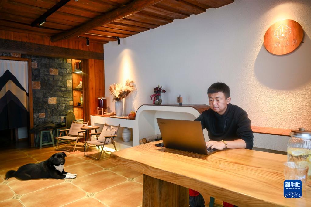 新疆阿勒泰地區禾木景區民宿經(jīng)營(yíng)戶(hù)許亮在處理游客訂單(1月7日攝),他的民宿春節期間已預訂70%。許亮來(lái)自烏魯木齊,看好旅游發(fā)展前景的他去年開(kāi)始租用當地村民的小木屋開(kāi)辦民宿。