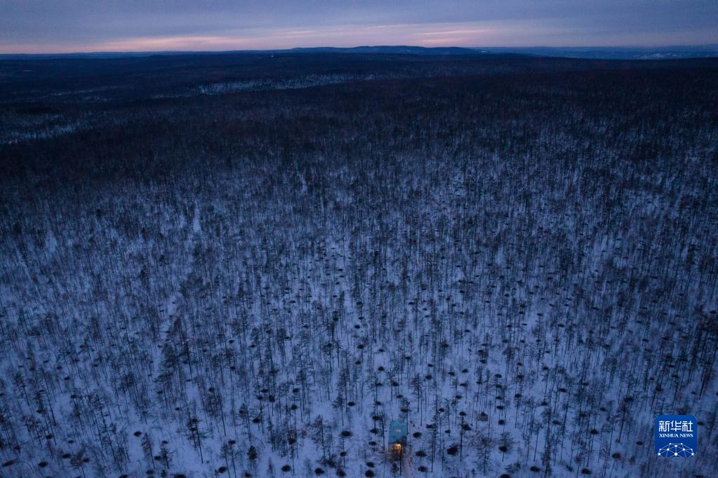 這是1月11日拍攝的漠河林場(chǎng)撫育作業(yè)點(diǎn)的臨時(shí)帳篷(無(wú)人機照片)。