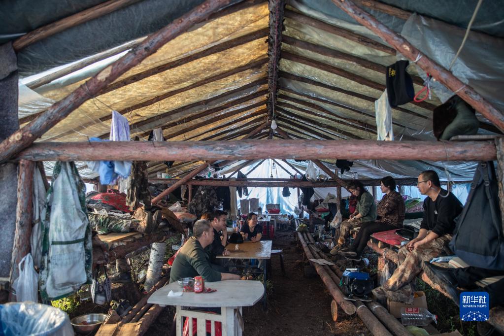 1月11日,森林撫育工人在漠河林場(chǎng)管護區作業(yè)點(diǎn)臨時(shí)帳篷內休息。