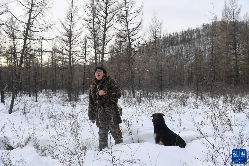 1月12日,覺(jué)樂(lè )在山林中呼喚自己的鹿群。新華社記者 彭源 攝