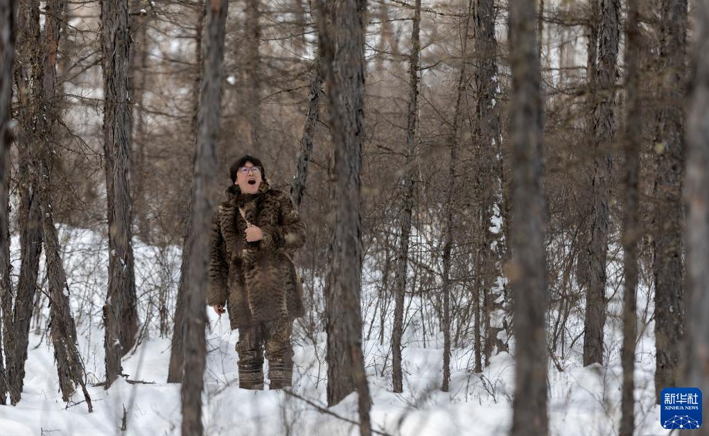 1月12日,覺(jué)樂(lè )在山林中呼喚自己的鹿群。新華社記者 費茂華 攝
