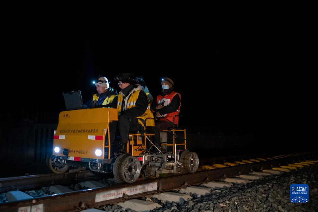 羅布(左)和同事在進(jìn)行鋼軌探傷作業(yè)(1月12日攝)。
