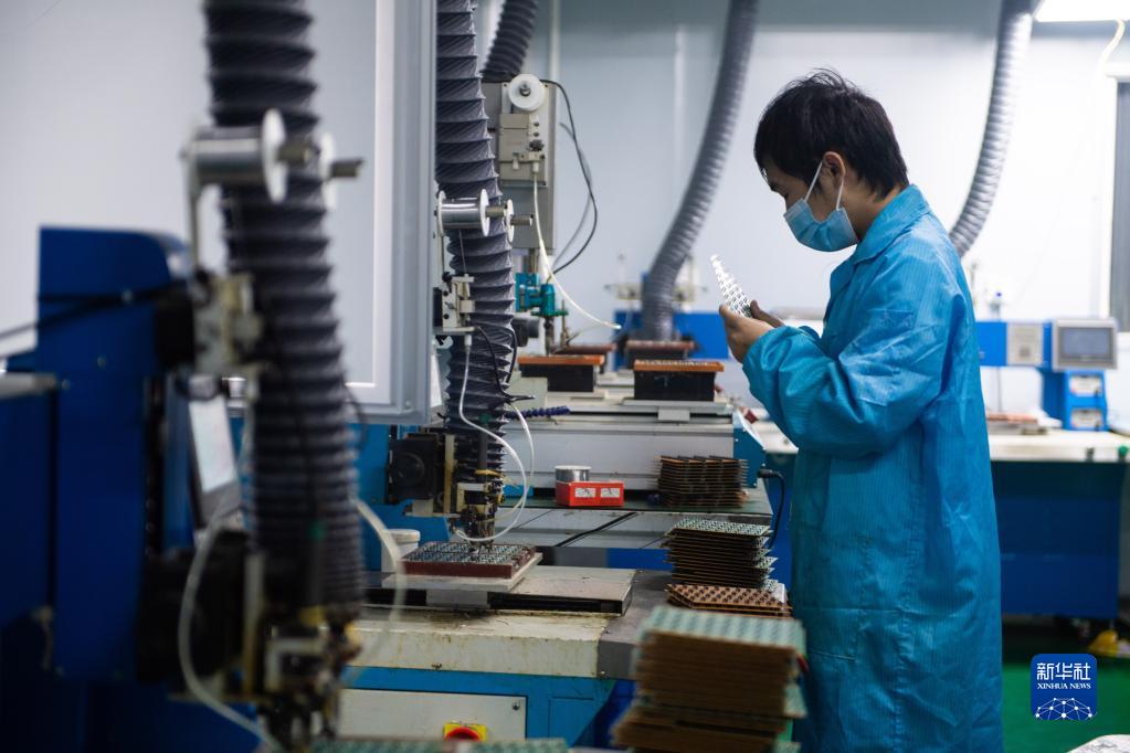 1月13日,在位于常德高新區的常德市捷芯微電子科技有限公司生產(chǎn)車(chē)間,工作人員在檢查電路板質(zhì)量。