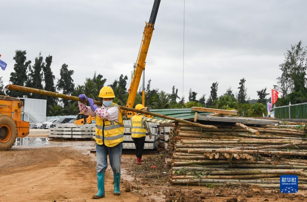 工人在博鰲零碳示范區項目現場(chǎng)施工(1月12日攝)。