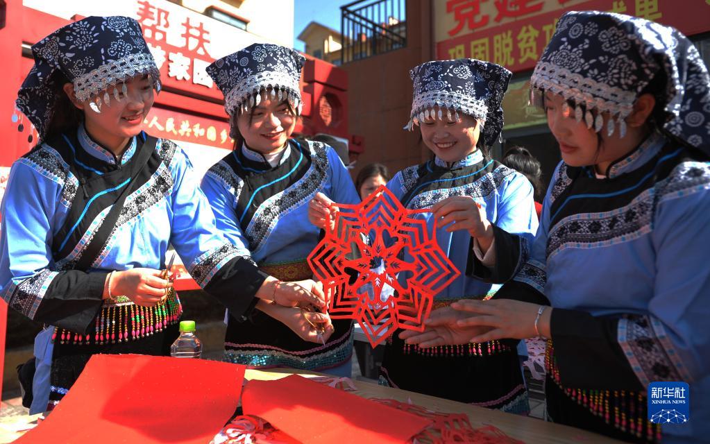 春節臨近,在貴州省黔南布依族苗族自治州羅甸縣木引鎮康夢(mèng)家園,搬遷群眾剪窗花、打糍粑、掛燈籠、貼春聯(lián),一派喜迎農歷新年到來(lái)的繁忙景象。