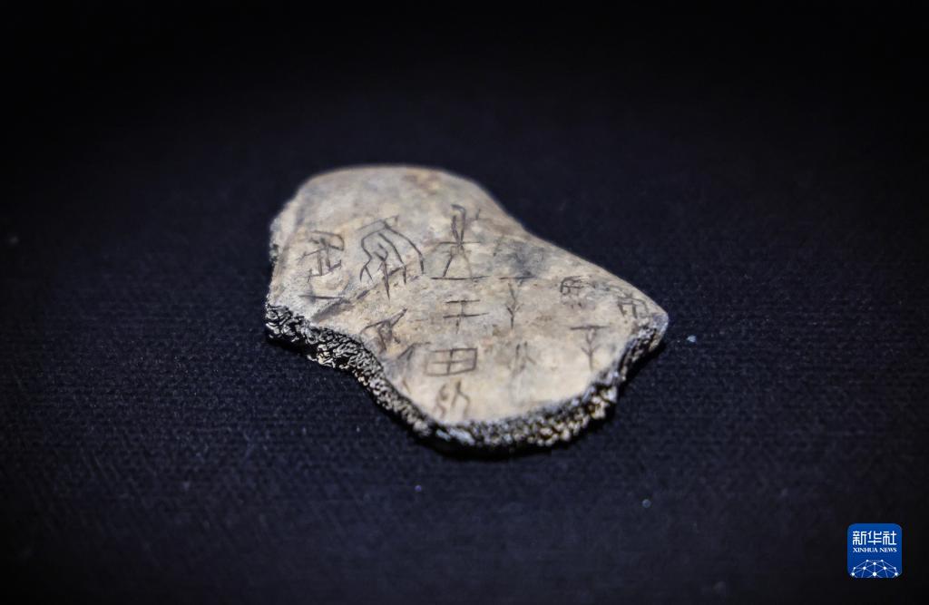 1月13日,“殷墟甲骨”專(zhuān)題展上的“甲骨2174”。左上為甲骨文“兔”。