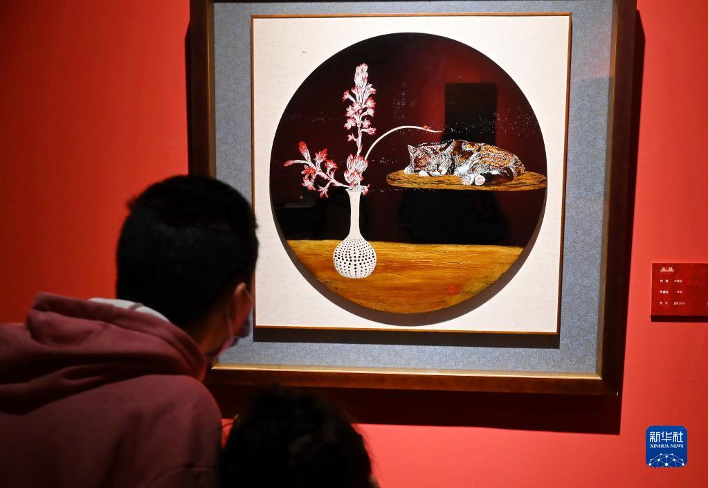 當日,“漆緣——臺灣現當代漆藝術(shù)作品展”在福建省美術(shù)館展出。本次展覽分為“傳承與融合”“交流與演變”“材料與美學(xué)”三個(gè)部分,共展出近百件作品。新華社記者 林善傳 攝