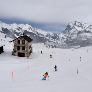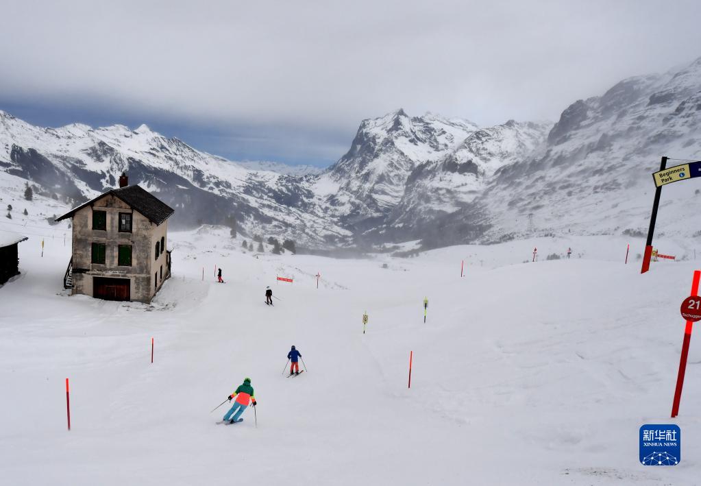 1月12日,人們在瑞士少女峰的滑雪場(chǎng)滑雪。