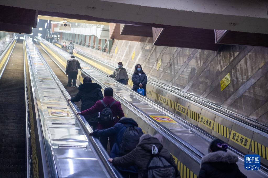 1月13日,在位于重慶市渝中區的皇冠扶梯景點(diǎn),游客在有序搭乘扶梯。
