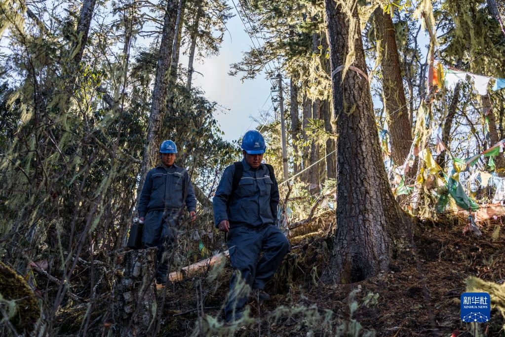 1月9日,旺登(左)與同事張金程進(jìn)山巡線(xiàn)。
