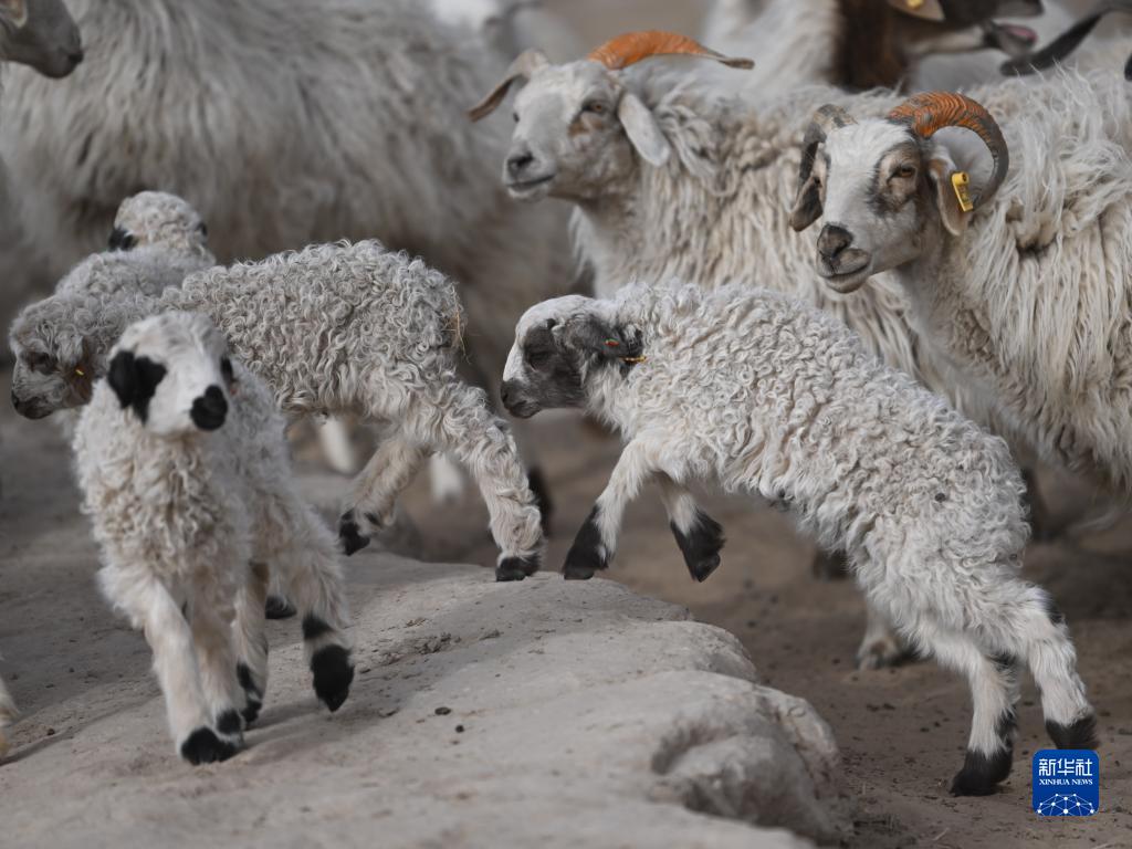 1月13日,在青海湖湖東種羊場(chǎng),小羊羔在羊群中活動(dòng)。