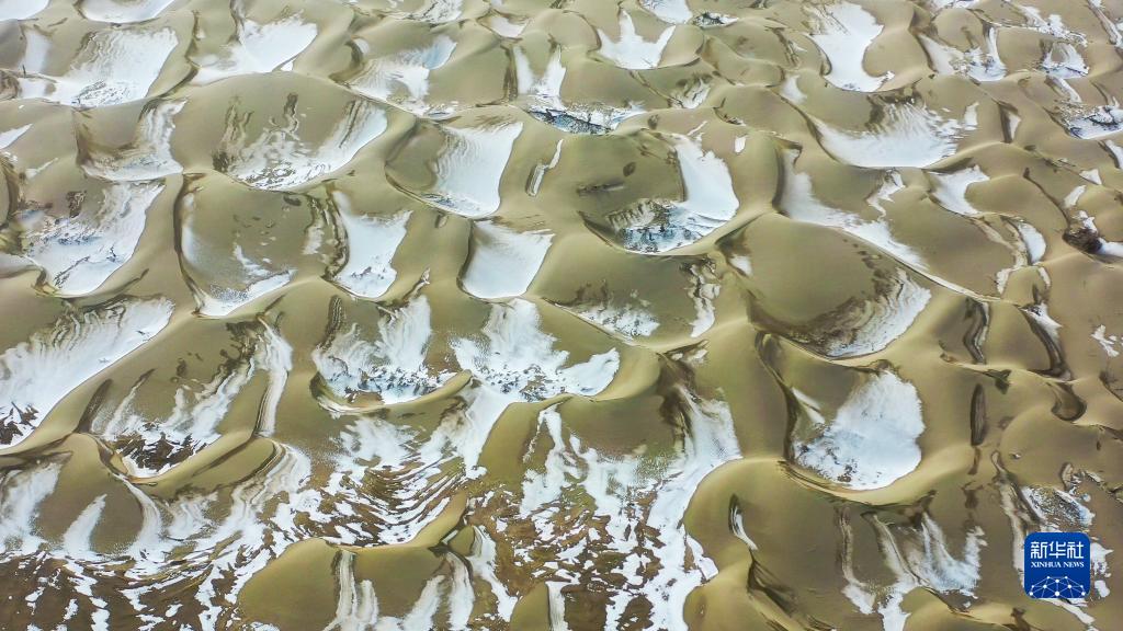 新疆阿克蘇地區沙雅縣以南的塔克拉瑪干沙漠迎來(lái)降雪(1月14日攝,無(wú)人機照片)。