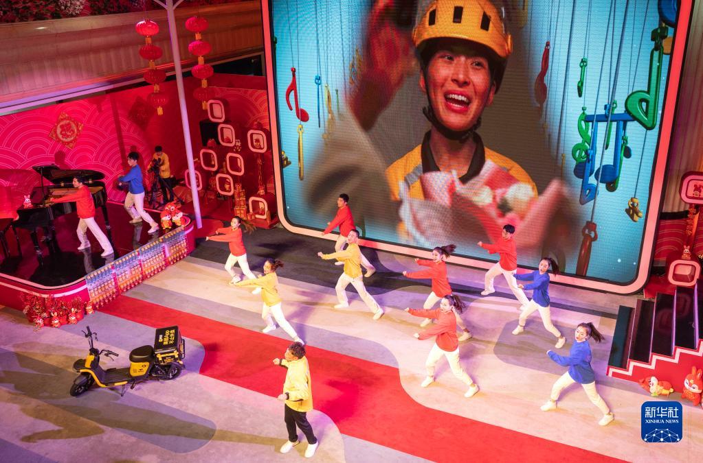 當日,由中華全國總工會(huì )文工團與中國財貿輕紡煙草工會(huì )聯(lián)合主辦的“溫暖有你 共赴美好”新就業(yè)形態(tài)勞動(dòng)者新春聯(lián)誼會(huì )在北京舉辦。聯(lián)誼會(huì )通過(guò)歌曲、舞蹈、相聲、詩(shī)朗誦、鋼琴演奏等藝術(shù)形式,突出喜慶、溫暖、美好的主基調。部分節目還邀請新就業(yè)形態(tài)勞動(dòng)者與演職人員同臺表演,為廣大新就業(yè)形態(tài)勞動(dòng)者送去新春祝福。