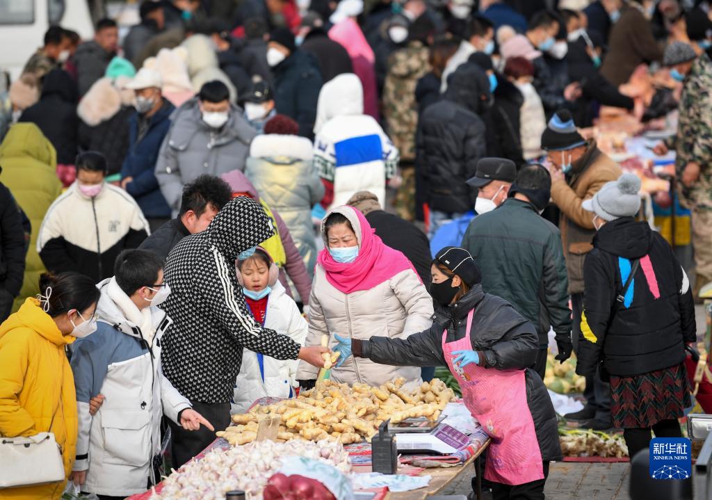 1月14日,人們在賀蘭縣金貴大集上選購。