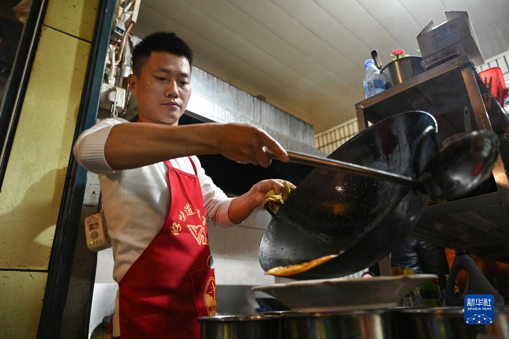 1月12日,返鄉前夕,川籍務(wù)工人員李小鐵在福建福州的一家餐館廚房?jì)茸霾恕?/p>