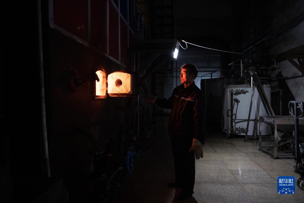 1月12日,司爐工丁俊旺在漠河華美供熱有限公司鍋爐房?jì)茸鳂I(yè)。