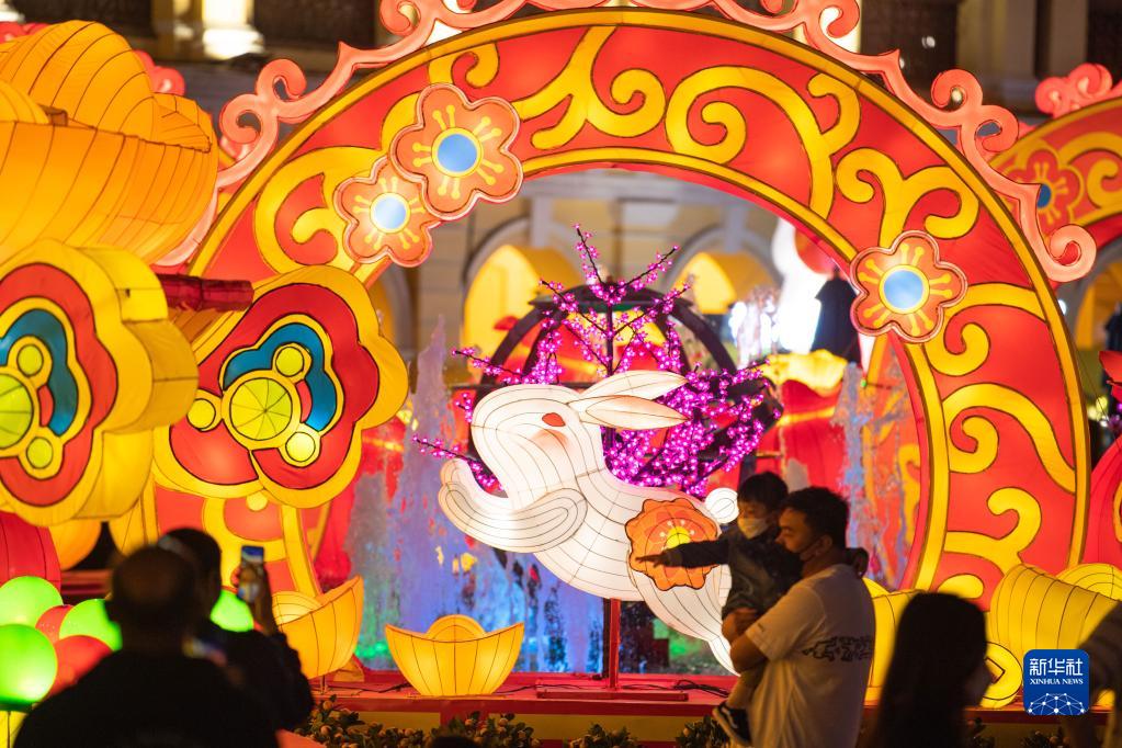 春節即將來(lái)臨,澳門(mén)市政署以“吉祥金兔賀新禧”為主題于澳門(mén)各區布置賀年燈飾,營(yíng)造濃厚的節日氛圍。