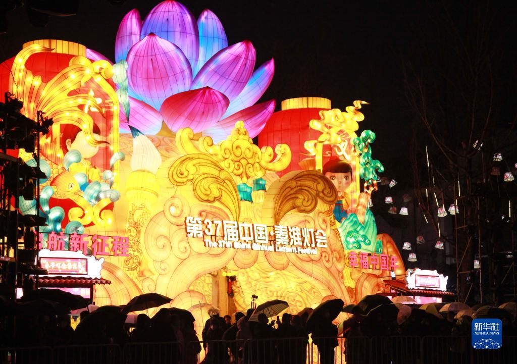 當晚,第37屆中國·秦淮燈會(huì )在南京夫子廟景區舉行點(diǎn)燈儀式,吸引不少市民游客。本屆燈會(huì )共設置各類(lèi)燈組170組。新華社發(fā)(劉建華攝)