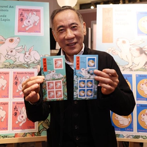 為迎接中國農歷新年,法國郵政公司14日在巴黎舉行中國兔年生肖紀念郵票發(fā)行儀式。中國兔年生肖紀念郵票共兩款,由法國華人藝術(shù)家陳江洪設計。新華社記者 高靜 攝