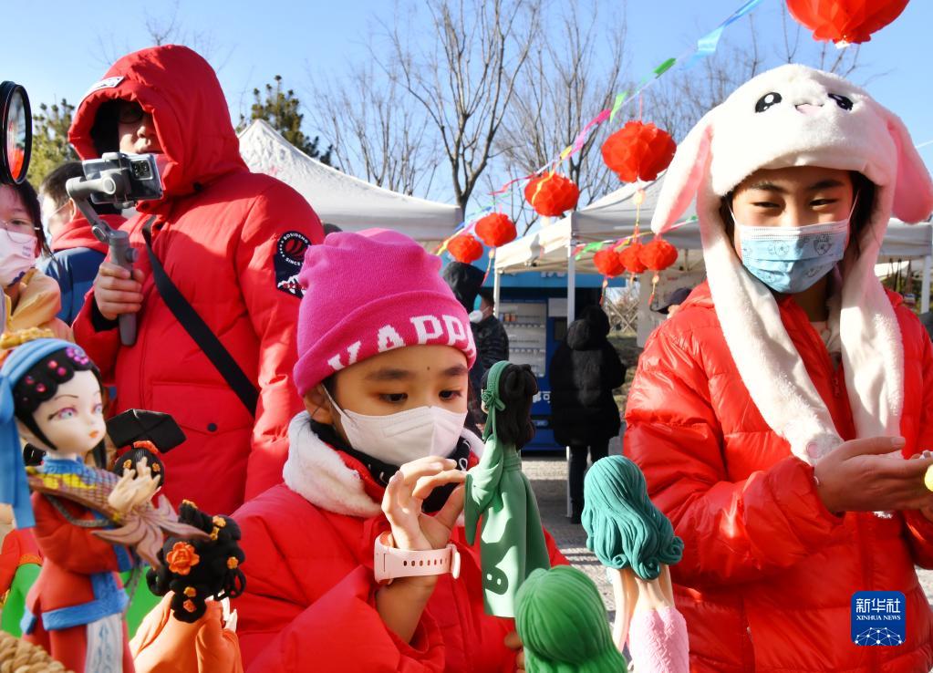 1月15日,人們在河北省滄州市“運河·年味兒”文化大集上選購面塑作品。