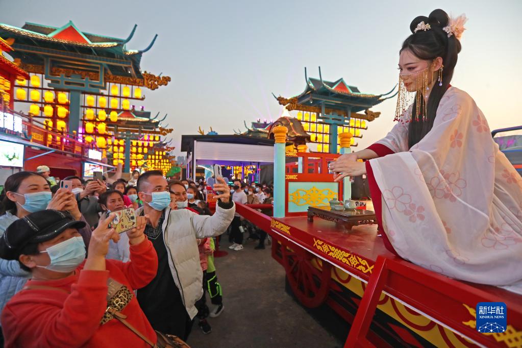 市民在“南寧之夜”文旅步行街與演員互動(dòng)(1月14日攝)。