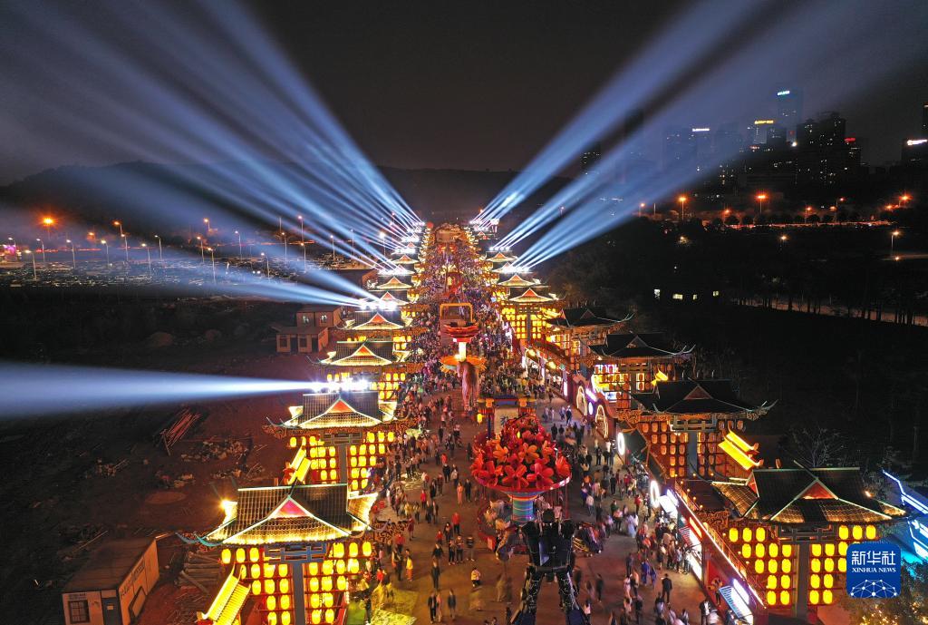 市民在“南寧之夜”文旅步行街游覽(1月14日攝,無(wú)人機照片)。