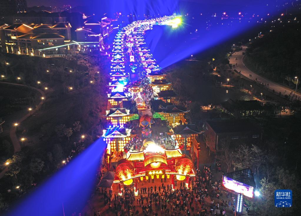 市民在“南寧之夜”文旅步行街游覽(1月14日攝,無(wú)人機照片)。