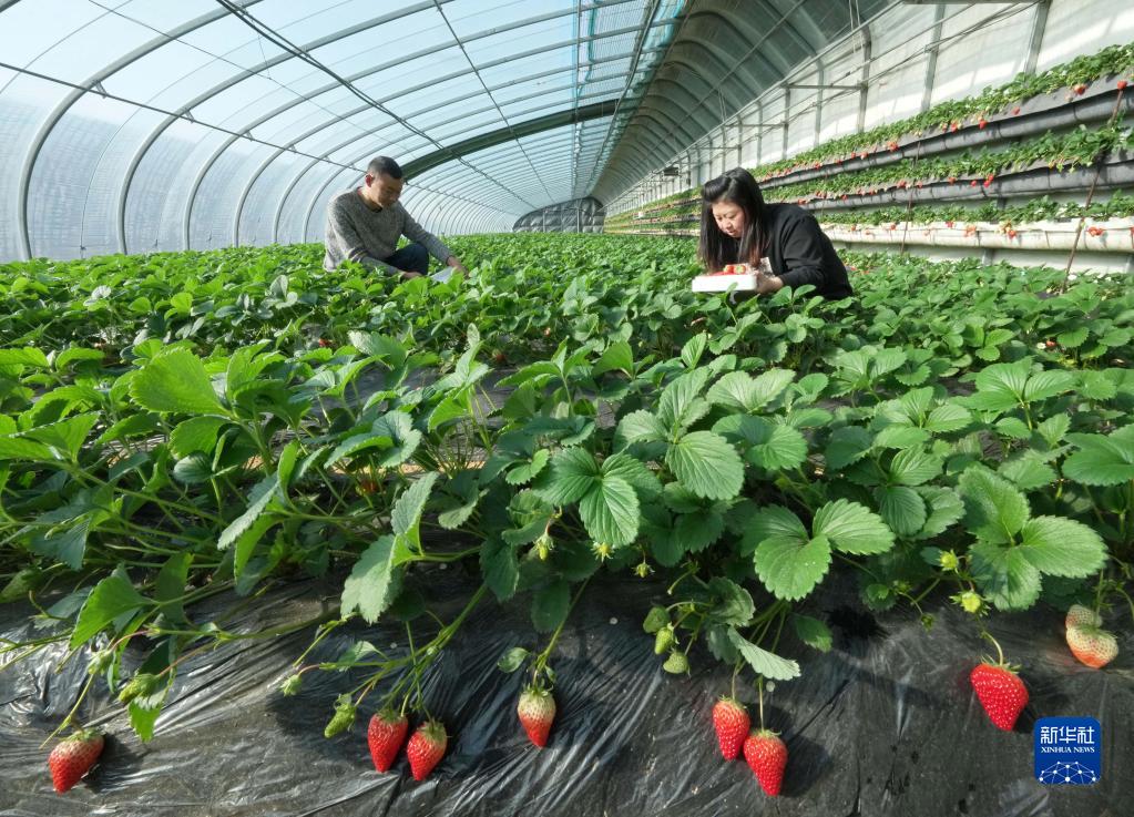 春節臨近,河北省昌黎縣種植的1萬(wàn)多畝大棚草莓陸續進(jìn)入采摘期,果農加緊采摘,供應市場(chǎng)。