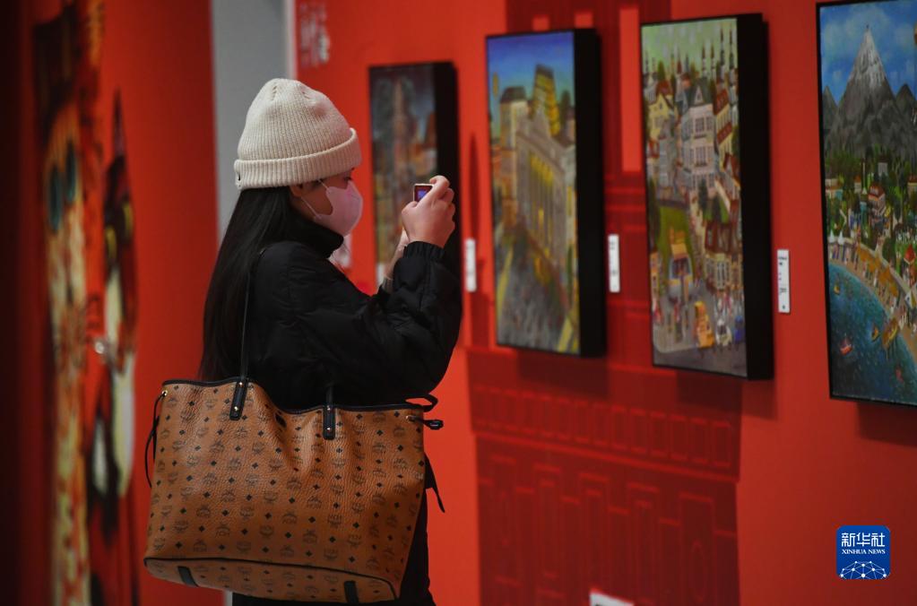 1月15日,觀(guān)眾在“尋喵啟事”藝術(shù)展上觀(guān)看展出的畫(huà)作。