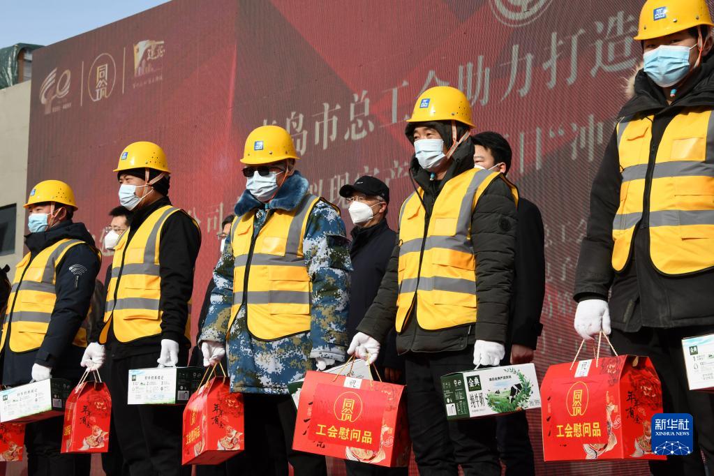 當日,山東省青島市總工會(huì )走訪(fǎng)部分重點(diǎn)工程項目工地,為春節期間堅守崗位的建設者們送上新春的祝福。