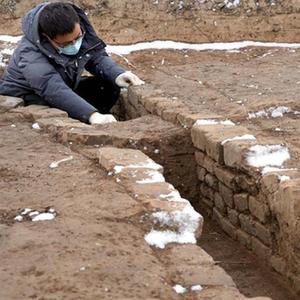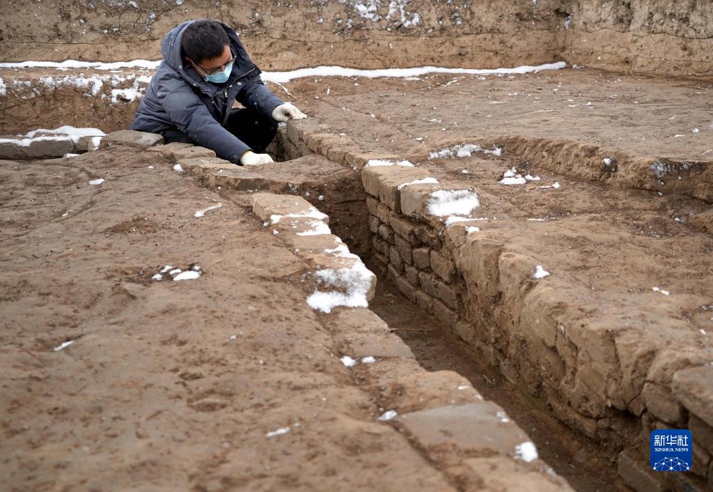 1月14日,考古工作人員在清理河南漢魏洛陽(yáng)城宮城遺址內的倉窖區磚砌水道。