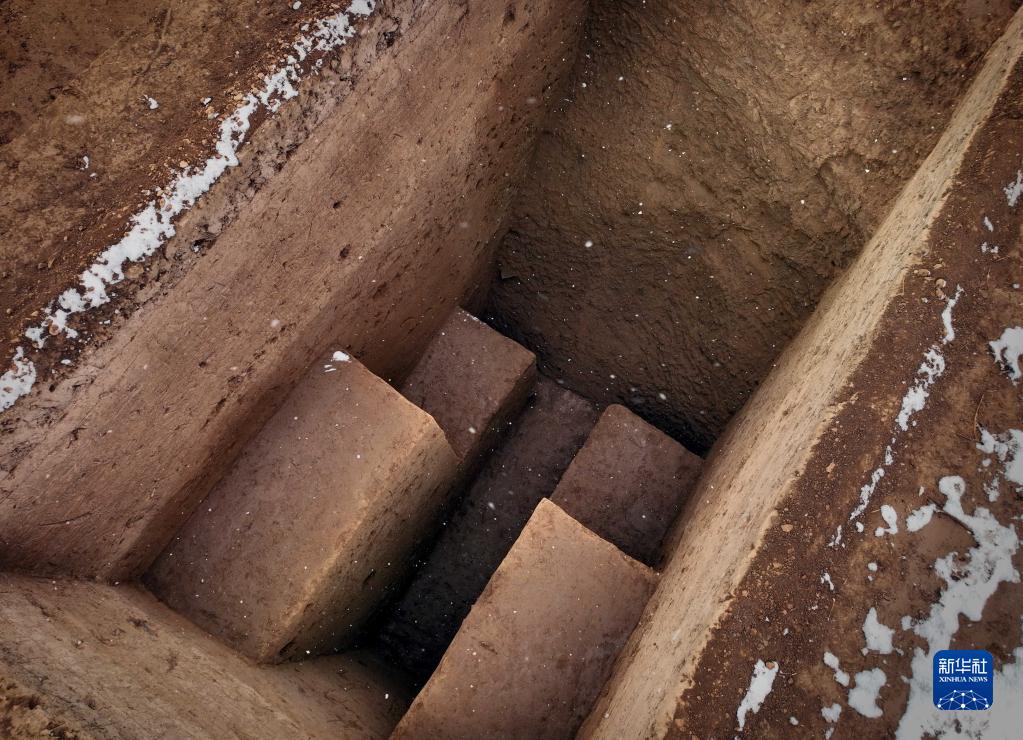 這是河南漢魏洛陽(yáng)城宮城遺址內的北魏時(shí)期倉窖遺跡(1月14日攝,無(wú)人機照片)。