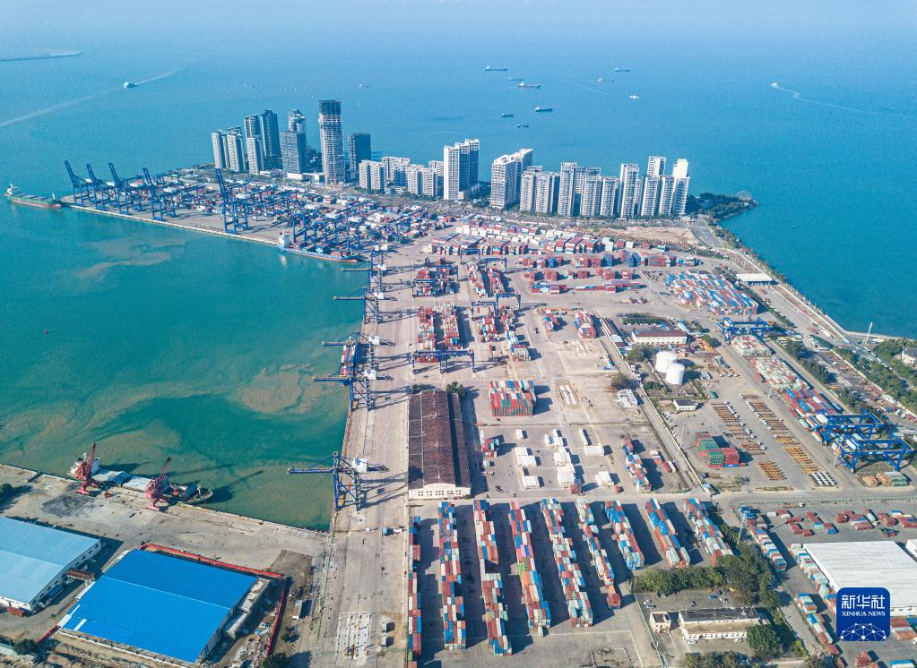 在海南省??谑信臄z的??诟奂b箱碼頭(無(wú)人機照片,1月13日攝)。