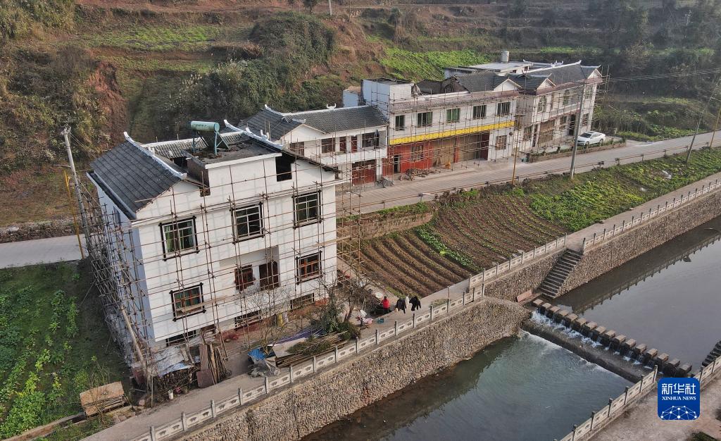 這是1月10日在富民村拍攝的改造中的民居(無(wú)人機照片)。