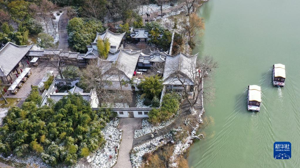 這是1月15日拍攝的江蘇揚州瘦西湖雪景(無(wú)人機照片)。