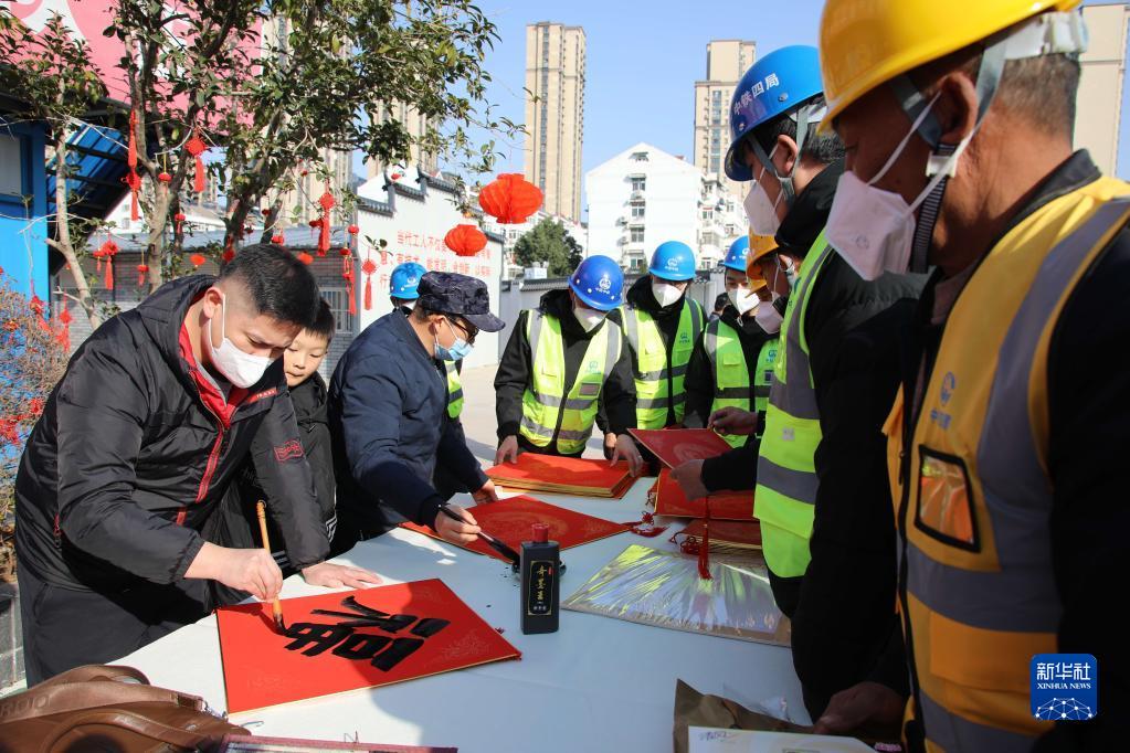 春節臨近,多地組織書(shū)法志愿者走進(jìn)社區、工地等場(chǎng)所,為人們書(shū)寫(xiě)春聯(lián)和福字,迎接春節的到來(lái)。