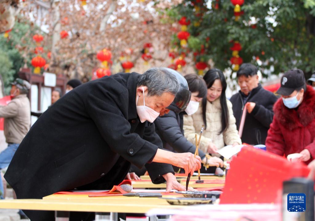 春節臨近,多地組織書(shū)法志愿者走進(jìn)社區、工地等場(chǎng)所,為人們書(shū)寫(xiě)春聯(lián)和福字,迎接春節的到來(lái)。