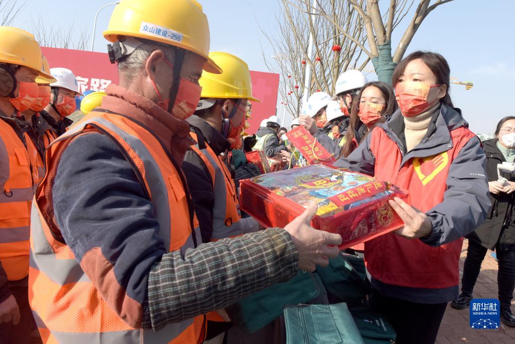 當日,位于安徽合肥市的中建四局六公司建設項目工地組織開(kāi)展“返鄉送健康、溫暖回家路”活動(dòng),為工友們免費送上春節年貨禮包和防疫愛(ài)心包等,溫暖農民工的返鄉路。