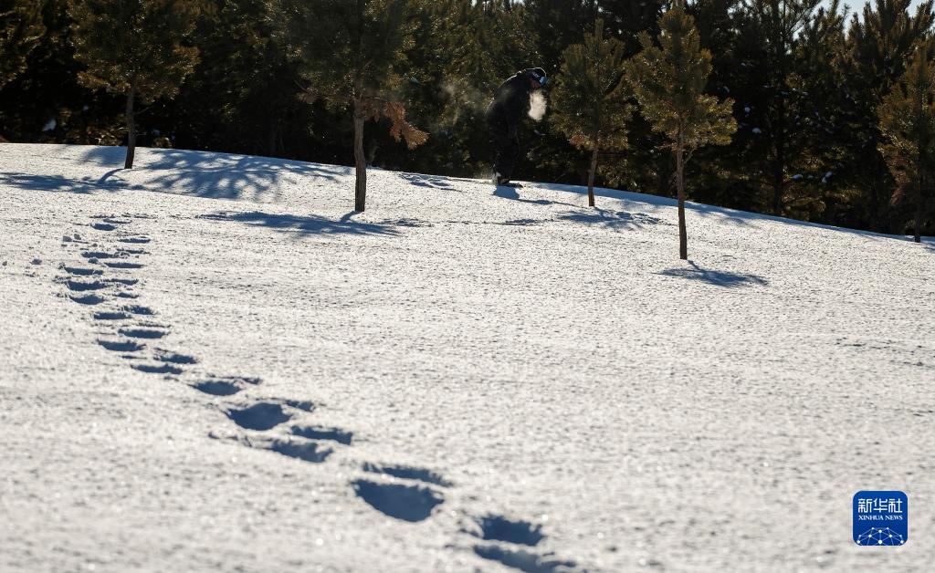 1月15日,布赫·巴雅爾準備在天然雪場(chǎng)滑雪。
