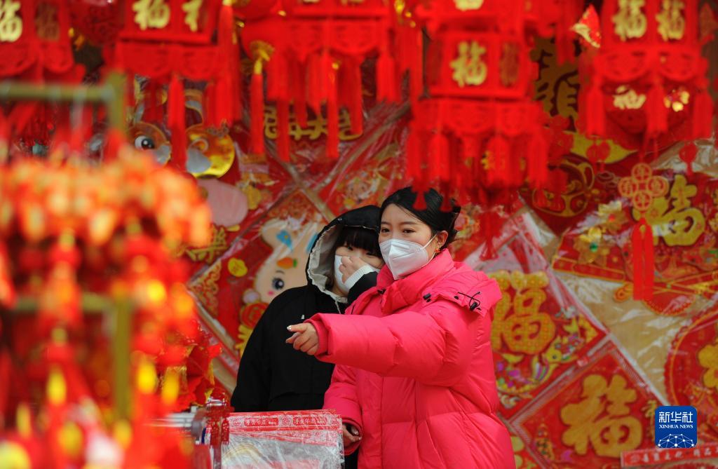 春節臨近,各種年集熱鬧紅火。人們選購年貨,迎接新春佳節。