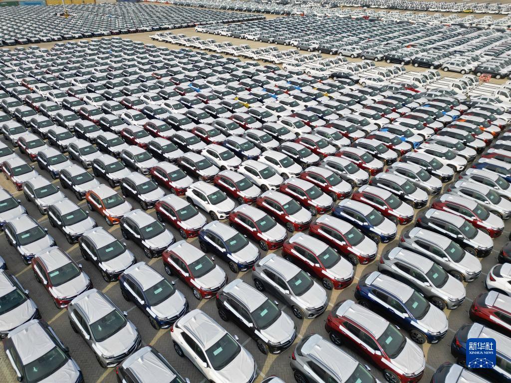 1月17日,出口商品車(chē)在山東煙臺港集結準備裝船(無(wú)人機照片)。