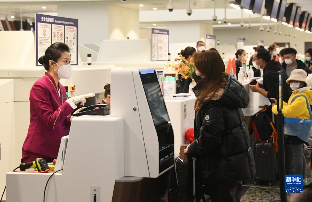 1月17日,在北京大興機場(chǎng),乘坐CZ309次北京大興飛往香港航班的旅客辦理值機。