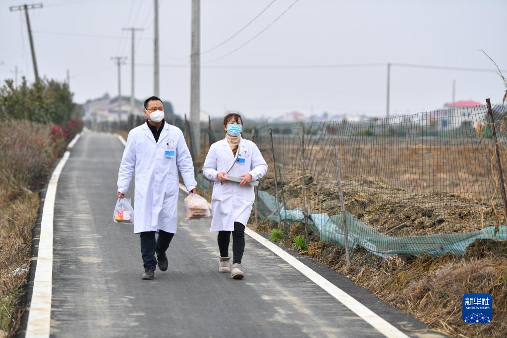 1月17日,在長(cháng)沙市望城區喬口鎮盤(pán)龍嶺村,醫護人員準備上門(mén)送醫送藥。
