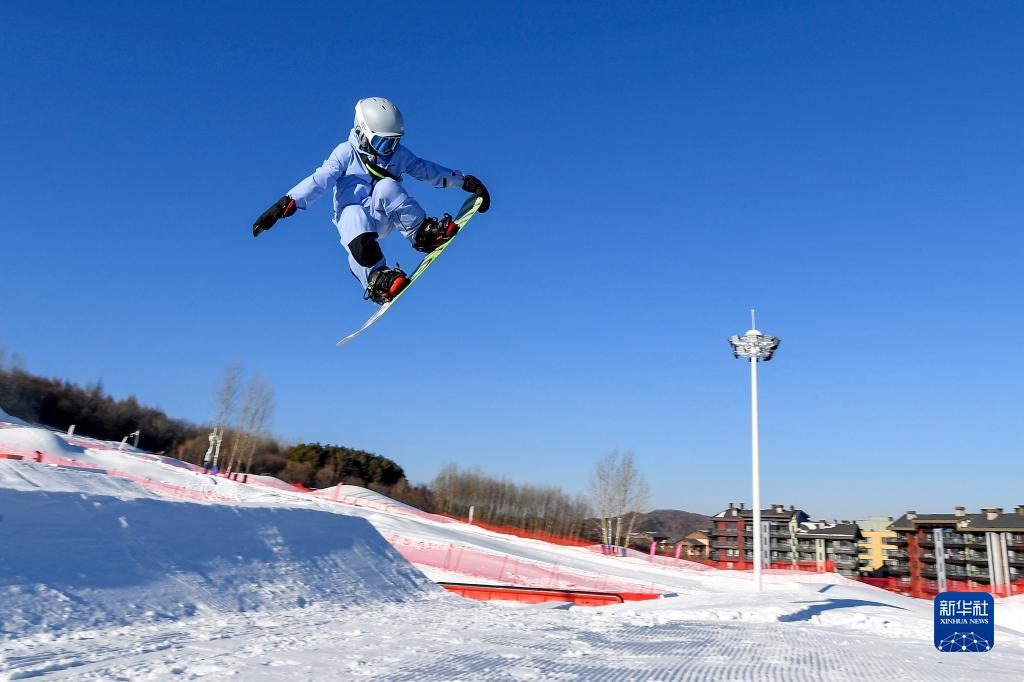 都軒銘在吉林省吉林市萬(wàn)科松花湖度假區V-PARK地形公園飛躍跳臺(2022年12月10日攝)。